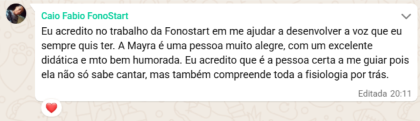 Solicitaremos alguns vídeos para análise e confirmaremos o dia e horário da videochamada para seu diagnóstico vocal ao vivo.